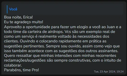Mais de R$7,5 milhões em resultados já documentados. Acesso direto às oportunidades mais lucrativas em airdrops e DeFi. Passo a passo, tutoriais e atualizações recorrentes.